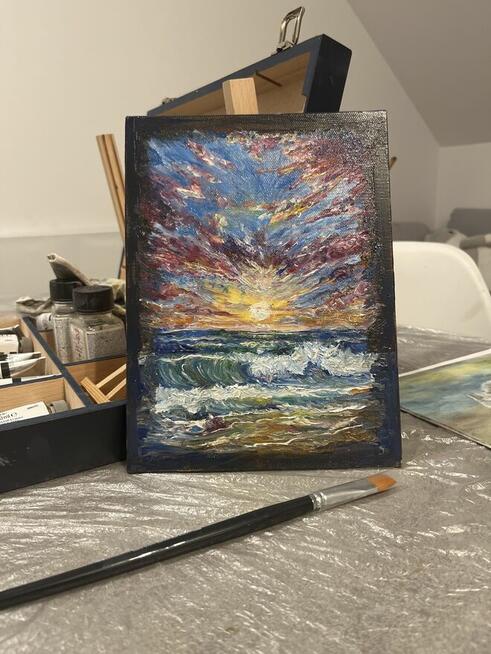 "Taniec Światła i Fali" Unikatowy obraz olejny o wymiarach 18 x 24 cm, pełen energii i barw, które oddają magię ...