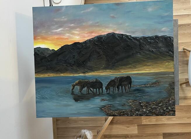 Sprzedam obraz olejny na płótnie naciągniętym na drewnianą ramę. Wymiary 100x80 cm, boki zamalowane w tonacji obrazu ...